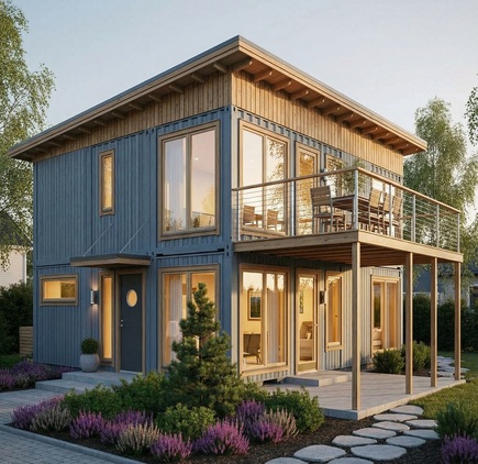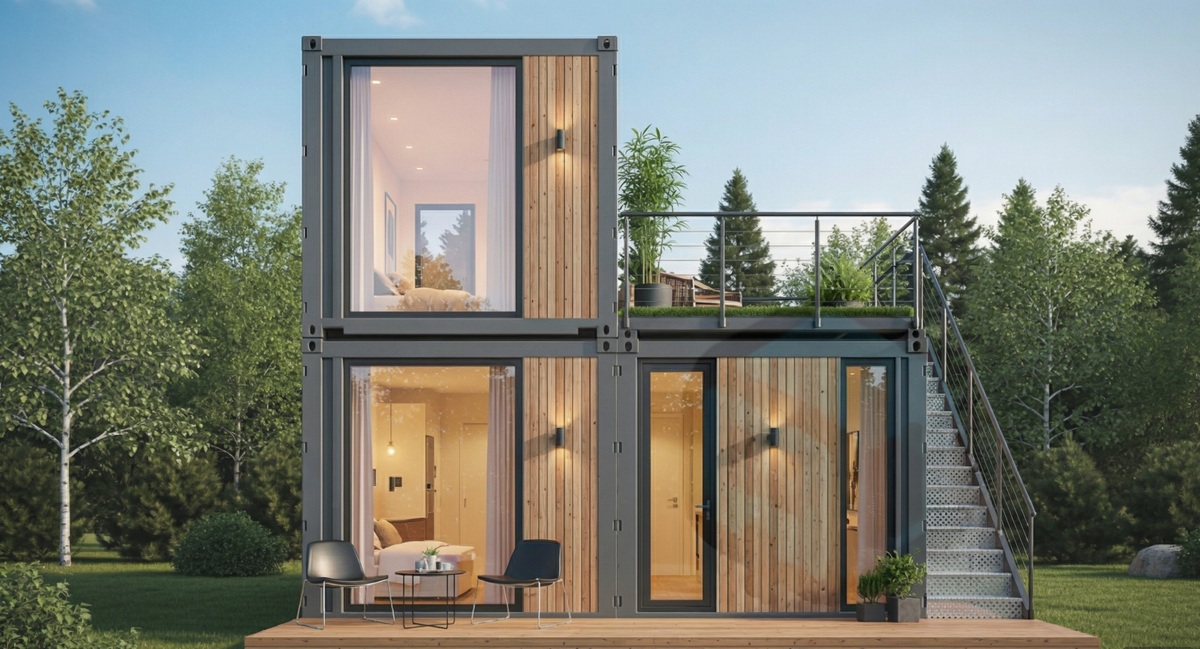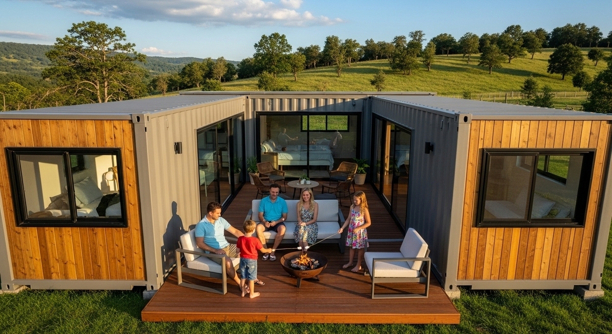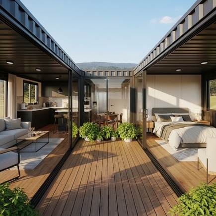3台の20ftユニットをコの字型に配置し 内側に中庭をつくることで、光・風・外との距離感を、暮らしの中に自然に取り込みます。