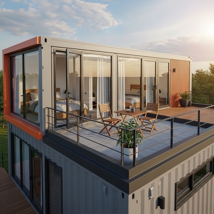 20ftユニット3台を立体的に構成し、屋上という外部空間を加えることで、住まいにもう一つの居場所をつくります。